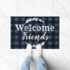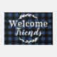 Felpudo Rusa Búfalo Check Plaid Bienvenidos Amigos Azul