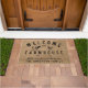 Welcome your guests into your home with this rustic, country, farmhouse doormat that features the words, "WELCOME TO OUR FARMHOUSE, MICHAEL, ELIZABETH, BRAYDEN & ALEXA THE ANDERSON FAMILY" in black typography, a cow and a rooster silhouette on a faux burlap background. Personalize this mat by adding your own personal family information. A perfect wedding, anniversary, or housewarming gift. Click "personalize this template" to change the names and any of the other words. If you need any help with customization please email me at ybnormalone @gmail.com. Thanks for stopping by www.zazzle.com/WhisperingPines. ©Karen Hall