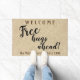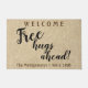 Bienvenido a sus invitados con este divertido guión tipográfico de diseño rústico de tapete de puerta "Abrazos gratis adelante" personalizado con un nombre y año más BIENVENIDA en la parte superior. Rellene el campo de texto con un nombre de familia, quite el nombre o haga clic en personalizar para seleccionar un estilo de fuente, tamaño y color que prefiera.