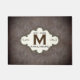 Estilo rústico, estilo de cuero vintage, doormat de bienvenida monogramado - Antiguo, de cuero marrón angustiado fondo con nombre familiar personalizado y jumbo, monograma marrón inicial con efecto de sombra, y familia establecida en el año centrado en un marco elegante y descolorido con curas. Los huéspedes podrán disfrutar de una elegante bienvenida frente a una acogedora cabaña de madera o un rancho tradicional. Moda de campo, regalo de bienvenida monogramado para la familia o regalo único de la ducha de boda para los recién casados.
