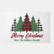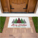 Esta alfombra de puerta rústica y personalizado de vacaciones presenta la moda de las mantas rojas y los verdes árboles de Navidad encima de su mensaje Feliz Navidad. Una bonita estética personalizada y tradicional, de nuevo en estilo, esta decoración festiva al aire libre es perfecta para una familia a la que le gusta un diseño clásico y nostálgico.