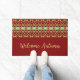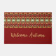 Los colores son naranja, burdeos y verde oscuro con acento crema.