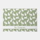Destei's cute pattern design featuring white bunnies in various poses on a sage green background. Perfect for Easter or for bunny lovers who enjoy simple, modern designs. There is also a personalizable text area for a name.