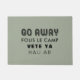 Felpudo anti divertido. Fondo de encargo del color. Añada fácilmente el texto adicional si está deseado. Diga entran lejos en cuatro otros idiomas - Fous le Camp (francés), Vete Ya (español), Hau Ab (alemán).