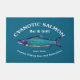 Un Sockeye Salmon de tono azul con texto que dice "Cyanotic Salmon Bar & Grill Kenai, Alaska" y "Combate al Descanso y la Relajación de la Pesca". La pesca del salmón es muy popular en Alaska. Imaginemos cientos de pescadores, hombro a hombro, alineando ambos bancos de un arroyo tratando de evitar cruzar líneas con todos los demás con la esperanza de aterrizar un gran salmón. Eso es pesca de combate. Después de un día de esto, tomamos algo de investigación y R en el mítico Salmón cianotico en Kenia. Cuentos de pesca contados ahí...algo cierto.