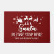 Diseño de Doormat con tematica navideña y la frase "Santa Please Stop Here" con el Nombre de tu familia personalizable!. Decore su casa con este lindo diseño de Tapete para Puerta Navideño. El modelo se personaliza con el nombre de tu familia.