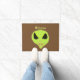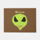 Un Doormat con una obra de arte de una cara ajena verde con colmillos, con la palabra Bienvenida. Puede cambiar o eliminar la palabra Bienvenida.