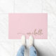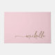Alfombra de bienvenida personalizada con nombre en monograma elegante y minimalista en oro rosa rubor. Consta del primer nombre en una hermosa caligrafía con cola de florituras (o tipografía) en dorado sobre fondo de color rosa rubor o rosa bebé. Un regalo femenino y elegante para la casa, también ideal para cumpleaños, aniversario, despedida de soltera, boda y fiesta de chicas. Es para la chica que le gustan las cosas limpias y minimalistas.