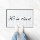 ¡Qué alegría increíble que tenemos porque nuestro Salvador ha salido de los muertos! Este felpudo es el recordatorio perfecto para regocijarnos siempre, ya sea que vengamos o nos vayamos, mirando hacia arriba o mirando hacia abajo, ¡él está ahí guiando nuestros pasos!