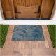 Ocean nautical beach congela el estilo metálico azul del doormat interior al aire libre. Bonita decoración casera de diseño costero elegante. Derechos de imagen de Marg Seregelyi Photography.