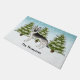 El ilustracion personalizado original de Destei de un perro de raza pastora alemán de color plata, estable/negro y plata. El perro es colocado en una escena invernal con tres abetos verdes y la caída de la nieve. El fondo es un degradado de azul a blanco que da al diseño ese aspecto frío del invierno. También hay un área de texto personalizable para un nombre.