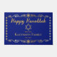 Elegantes copos de nieve falsos bordes dorados tipo desplazamiento y diseño de vacaciones de Star of David con tu nombre familiar y saludo ["Happy Hanukkah"] con la familia de citas.