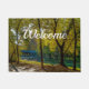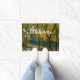 Doormat de bienvenida al personalizable con una hermosa tarde de otoño en un puente cubierto y Dogwood Creek en Lampe Missouri, cerca de Branson MO. Esta es una foto que tomé y convertí en una especie de obra maestra de pintura de medios mixtos. ¿Buscando más impresiones o productos? Siéntete libre de visitar mi tienda: http://www.zazzle.com/timelessmomentsphtgy Esta foto fue tomada por Jennifer White con Timeless Moments Photography. Todas las imágenes tienen derechos de autor © Timeless Moments Photography.
