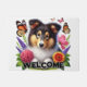 Felpudo Sheepdog de Shetland con flores y mariposas