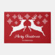 El diseño original de la silueta de Destei de dos ciervos frente a otros junto con algunos copos de nieve decorativos. El color de fondo es rojo. También hay un área de texto personalizable que ahora dice: "Feliz Navidad".