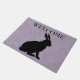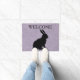 Esta alfombra exterior de la puerta de bienvenida tiene una silueta negra de conejo sentado sobre una púrpura clara de bonito con un patrón de mármol. Personalizar el texto de bienvenida con la plantilla.