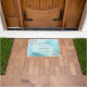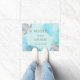 "welcome to our lake house" doormat with silver turtle son a blue silver alcohol ink background.