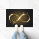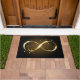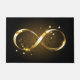 Oro, símbolo de infinito de joyas con estrellas doradas sobre fondo negro. Diseño con estrella dorada.