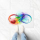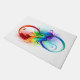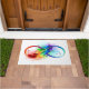 Símbolo de infinito dibujado artísticamente con una hermosa pluma arco iris sobre fondo blanco. Estilo tatuaje.
