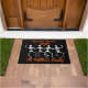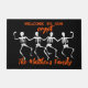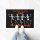 Este divertido felpudo presenta cuatro esqueletos sobre un fondo negro con un texto naranja que dice: Bienvenidos a nuestra cripta. Personalice fácilmente esta alfombra increíblemente espeluznante con un nombre personalizado, otro texto o quítelo completamente.
