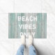 Patrón de madera tintada azul que parece haber sido rescatado de una cabaña de playa templada con personalizable "sólo vibes de playa" texto de fuente blanca angustiada.
