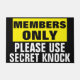 Sólo miembros Por favor use Secret Knock - esto puede funcionar como una estera de puerta seria si está organizando la reunión mensual para su capítulo local de los Illuminati. O puede ser una estera de novedad graciosa en la puerta de tu casa vieja y llana para decirle a la compañía no deseada y a los abogados que pueden llamar hasta que se les desangren los nudillos, pero no los dejarás entrar.