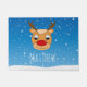 Un diseño festivo y reconfortante con un reno sonriente en medio de una suave nevada sobre un tranquilo fondo azul, personalizado con un nombre personalizado para un toque de magia navideña. Perfecto para añadir un toque de alegría estacional.
