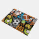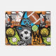 A bold, energetic sports collage featuring basketball, football, soccer, tennis, and baseball elements with dynamic typography like “Big Game,” “Goal Time,” and “Winner,” set in bright, high-contrast colors.