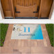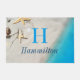 Una playa de arena clara en el borde de las aguas, con un diseño de estrellas de mar y conchas medio enterradas que incluye su carta monográfica personalizada y nombre completo de la familia. ¡Ideal para una casa de playa!