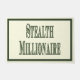 Texto verde que dice "STEALTH MILLIONAIRE" en un tipo de letra que se parece a los que se encuentran en la moneda. Nunca se sabe quién podría ser millonario. No todos viven grandes con ropa llamativa, el auto elegante o una gran casa. No anuncian que están bien. Son millonarios furtivos. Anuncien el hecho y no son realmente millonarios sigilosos, pero si nadie cree que su secreto está a salvo; tal vez estén ocultos a la vista de todos. Para millonarios sigilosos y los que trabajan en ello.