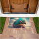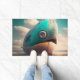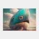 Whale sculpture on the beach, in the style of rendered in cinema4d, surrealistic grotesque, dreamlike illustration, dark cyan and green, concept art, gigantic scale, fish-eye lens