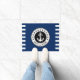 Nombre del barco personalizado con Anchor, Rope y Stars Personalizado Navy Blue, Black and White Doormat.