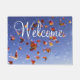 Un torrente de mariposas brillantes de joyas que zumban por el cielo azul de verano en medio de una nube de semillas de diente de león, con un par de libélulas zumbando a su lado.