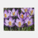 Cuando llega la primavera, uno de los primeros lugares alegres son los cruces que salen del suelo. Aquí hay una foto con el sol brillando en las cruces moradas. Visita nuestra tienda para ver más fotos de las primeras flores de primavera. Esta imagen también aparece como el fondo de pantalla panorámica "Cluster of Purple Crocuses" de la sección Primavera de MLeWallpapers.com.