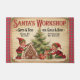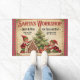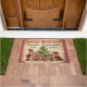 La fantástica alfombra de la puerta delantera de las vacaciones cuenta con una escena de estilo vintage del Taller de Santa Claus, con elfos, casa de pan de jengibre y árbol de Navidad.