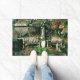 El sol desciende lentamente hacia el cielo, iluminando el patio. Te sientas en el descansado banco, bebiendo una taza más de té. El tiempo está suspendido. Este felpudo presenta una foto que ha sido alterada digitalmente para que parezca más un cuadro en tonos de oliva, oro y rojos oscuros.