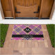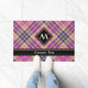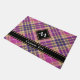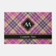 Tartán rosa, amarillo dorado y azul. Patrón sin foco. texto personalizado y monograma.