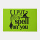 Este clásico diseño de Halloween presenta la espeluznante frase "Te pongo un hechizo" en una letra audaz de inspiración gótica. El blanco y el negro crean un ambiente sobrio, por lo que el diseño es perfecto para la temporada de Halloween. Acompañando el texto hay elementos de bruja icónica, incluyendo un gorra de bruja puntiaguda, un palo de escoba, una telaraña y una araña diminuta, todos dispuestos para crear una composición fascinante. El sutil detalle de los puntos alrededor del texto añade un toque de encanto mágico.
