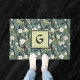 Felpudo Teal Green Chinoiserie Floral White Initial