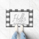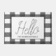 Doormat gris y blanco rústico de la tela escocesa del control del búfalo con la palabra "hola" en escritura fina. ¡Esta estera se puede personalizar con el su apellido!