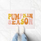 Este diseño de otoño vibrante y alegre celebra la amada "Temporada de Calabaza" con una tipografía audaz inspirada en la retro. El texto está dispuesto en un estilo alegre y ondulado, con cada letra rellenada en una paleta cálida de otoño en tonos naranja, amarillo y rosa. Las letras onduladas y curvadas le dan al diseño un toque nostálgico y divertido, que recuerda a los estilos clásicos de los años 70. El conjunto es animado y acogedor, lo que refleja perfectamente la emoción y la comodidad que se avecinan en otoño.