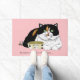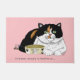 Un lindo gato calico junto a su tazón de comida vacía que quiere ser alimentado temprano.