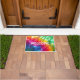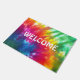 ¿Usted ama el teñido anudado? ¡Celebre los años 60 y el 70s en estilo con este doormat del teñido anudado del arco iris! Foto de un pedazo real del teñido anudado con el sol que brilla a través para hacer los colores vibrantes.