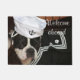 El terrier blanco y negro de Boston con la "recepción a bordo" del mensaje, perro está llevando el equipo del marinero.  Por favor no dude en añadir, cambiar, o quitar el texto si usted tiene gusto.