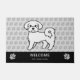 El original ilustracion personalizado de Destei de un lindo perro de raza maltesa de color abrigo blanco. El color de fondo es gris con un patrón de impresión de garras de perro claro. Debajo del perro hay una línea negra con huellas de pata gris y dos áreas de texto personalizables para un mensaje de bienvenida personalizado y un nombre familiar, por ejemplo.