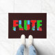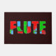 El texto flauto en bloques coloridos rodeados por un patrón de escotilla es un diseño único de regalo para músicos de viento de madera, profesores de música y estudiantes en banda de conciertos y marchas.