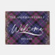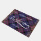 textura diagonal de tela y Relieve metalizado dorado Bienvenida Un gran regalo para recién casados o nuevos propietarios de viviendas. Este tapete de bienvenida clásico de color púrpura, marina, rosa y negro, texturado en tela, sin fisuras en diagonal, personalizado muestra "Bienvenidos" con letras modernas con el nombre y el año de su familia. Un borde ancho completa el diseño.