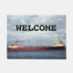 From an original photo by Gene Buel of Marine City, Michigan. Circa 1972-1974. Taken north of Marine City facing Sombra, Ontario, Canada. Customize the word "Welcome" to read anything you want. Suggestions include "Remember" or perhaps "November 10, 1975". SS Edmund Fitzgerald was an American Great Lakes freighter that sank in a Lake Superior storm on November 10, 1975, with the loss of the entire crew of 29. When launched on June 7, 1958, she was the largest ship on North America's Great Lakes, and she remains the largest to have sunk there. For 17 years Fitzgerald carried taconite iron ore from mines near Duluth, Minnesota, to iron works in Detroit, Toledo, and other Great Lakes ports. As a "workhorse," she set seasonal haul records six times, often breaking her own previous record.Captain Peter Pulcer was known for piping music day or night over the ship's intercom while passing through the St. Clair and Detroit Rivers (between Lakes Huron and Erie), and entertaining spectators at the Soo Locks (between Lakes Superior and Huron) with a running commentary about the ship. Her size, record-breaking performance, and "DJ captain" endeared Fitzgerald to boat watchers. Carrying a full cargo of ore pellets with Captain Ernest M. McSorley in command, she embarked on her ill-fated voyage from Superior, Wisconsin, near Duluth, on the afternoon of November 9, 1975. En route to a steel mill near Detroit, Fitzgerald joined a second freighter, SS Arthur M. Anderson. By the next day, the two ships were caught in a severe storm on Lake Superior, with near hurricane-force winds and waves up to 35 feet (11 m) high. Shortly after 7:10 p.m., Fitzgerald suddenly sank in Canadian (Ontario) waters 530 feet (160 m) deep, about 17 miles (15 nautical miles; 27 kilometers) from Whitefish Bay near the twin cities of Sault Ste. Marie, Michigan, and Sault Ste. Marie, Ontario—a distance Fitzgerald could have covered in just over an hour at her top speed. Although Fitzgerald had reported being in difficulty earlier, no distress signals were sent before she sank; Captain McSorley's last message to Anderson said, "We are holding our own." Her crew of 29 perished, and no bodies were recovered. More than 15,000 people attended Fitzgerald's christening and launch ceremony on June 7, 1958. But the event was plagued by misfortunes: When Elizabeth Fitzgerald, wife of Edmund Fitzgerald, tried to christen the ship by smashing a champagne bottle over the bow, it took her three attempts to break it. A delay of 36 minutes followed while the shipyard crew struggled to release the keel blocks. Upon sideways launch, the ship crashed violently into a pier. On September 22, 1958, Fitzgerald completed nine days of sea trials.