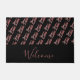 Texto de bienvenida sobre este rosa de tijeras de oro y peine sobre el diseño de fondo negro para su negocio de peluquería.