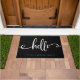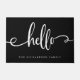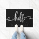 Este doormat ofrece un fondo negro rico y una tipografía blanca moderna que diga "hola".